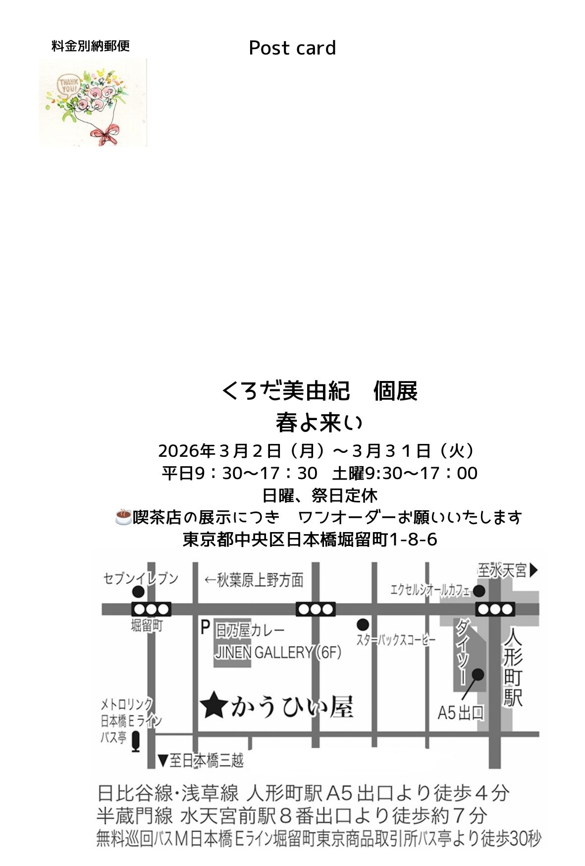 人形町にあります かうひい屋にて個展開催します。